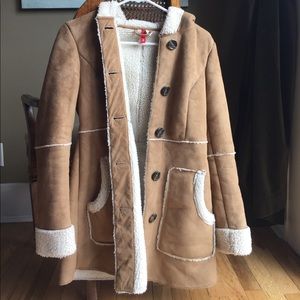 Faux Shearling long hooded coat