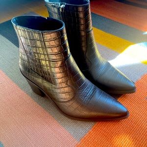 Ro & De Olive and Black Sleeveless Tuxedo Top/Blouse