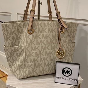 Michael Kors Large East West Jet Set Signature Tri-Compartment Tote Bag