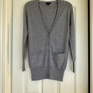 J Crew Gray 100% Merino Wool V Neck Botton Down Long Cardigan Sweater Sz: XS