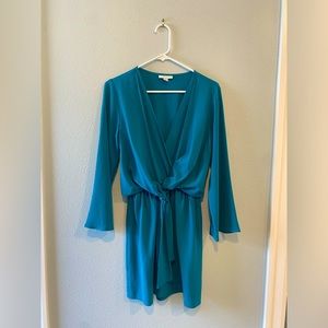 Topshop Dark Teal Tie Front Mini Dress, Size 6, EUC