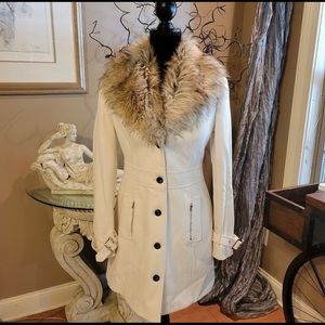 Bebe Wool Blend, Faux Fur Collar, Knee Length Jacket. Size Small. H06