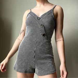 Caution to the Wind Black and White Striped Romper
