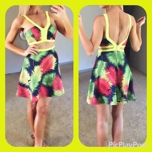 Tropical Print Cutout Dress