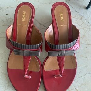 🦩Fendi Red Patent Leather Bow thong wedge sandals