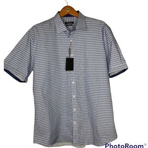 Bugatchi Men's XXL Short Sleeve Retro Print Button Front Shaped Fit