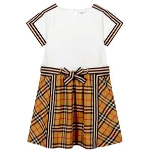 NWT Burberry Kids White & Beige Check / Stripe Dress - 2 Years