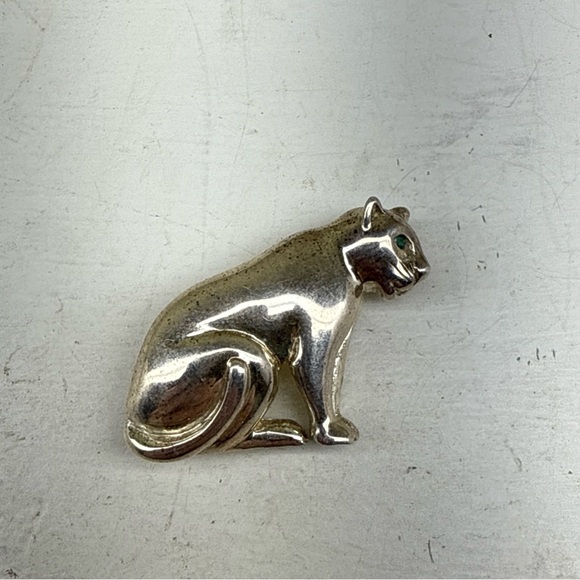 ⭐️⭐️⭐️⭐️⭐️ Stunning Vintage Sterling Big Cat Brooch ⭐️⭐️⭐️⭐️⭐️ I am absolutely thrilled with this gorgeous vintage sterling silver big cat brooch! The design is elegant, graceful, and full of character. I especially love the relaxed pose of the cat, which gives the piece such a calm, confident presence. The sculpting beautifully captures the sleek lines of this magnificent feline, and the vivid emerald eye gives the brooch a captivating, almost lifelike expression. It’s even more impressive in person and has that wonderful vintage charm and craftsmanship that make pieces like this so special and collectible. Truly a standout addition to any jewelry collection. Everything arrived carefully packaged and exactly as described. John clearly knows his vintage pieces and was wonderful to work with. I also appreciated the thoughtful note hoping I would enjoy the brooch — such a nice personal touch. Highly recommend John and his beautiful vintage finds. I look forward to browsing his closet again and discovering more treasures! ✨