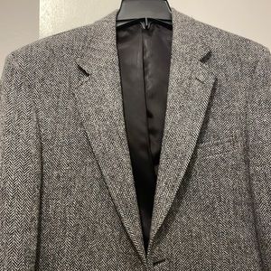 40R Harris Tweed Jos A Bank Sport Coat, Black/White (grey) herringbone, like new
