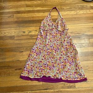 Silk Halter Floral Pink Orange Purple Yellow Y2K Dress Size XL
