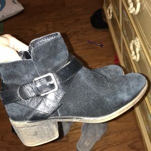Gray ankle boots with small heel. Slight wear on the pleather