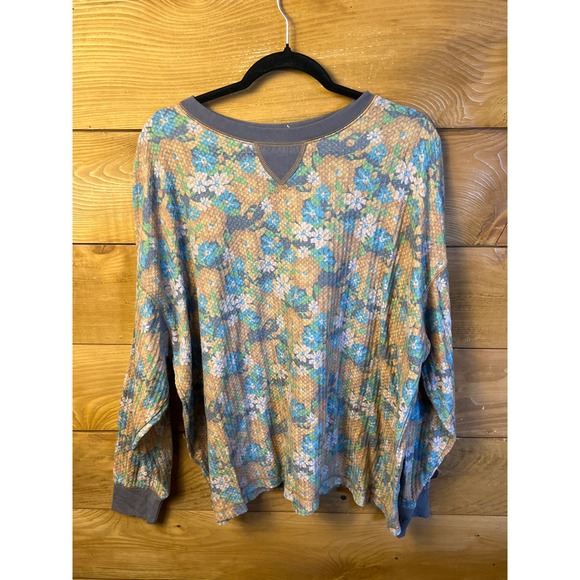 I love blue tops. This is no exception. Fits nicely with a bit of give. I will shorten the sleeves a little. This is easy for me. I like that it blouses at the bottom because I am short. Very attractive top.