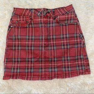 Red Plaid Denim Skirt