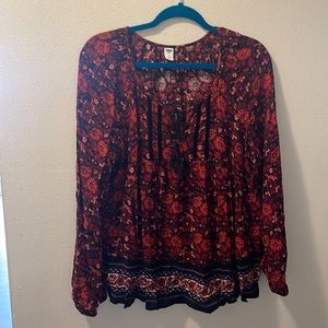 Knox Rose blue floral blouse boho printed peasant top hippie Target navy flutter