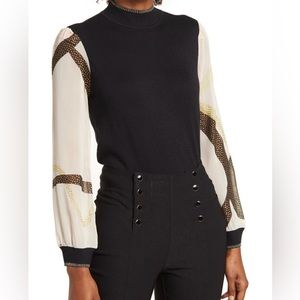 By Design Mock Neck Chiffon Sleeve Sweater