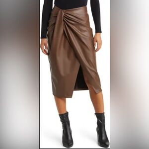 For love & lemons Morgan satin rust polka dot cowl neck open back midi dress