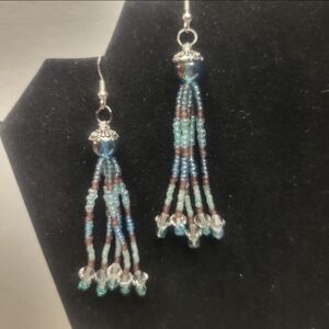 Hand Crafted Elegant Black and Silver Beaded Earrings