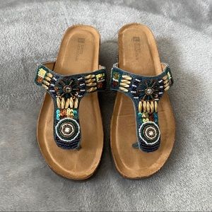 White Mountain Blue Beaded Wedge Sandals