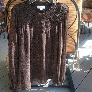 Loft Embroidered Black and Tan Blouse