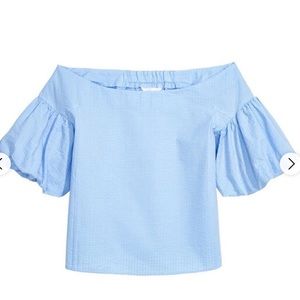 H&M off shoulder light blue puff sleeve top size 8