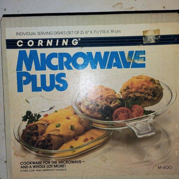 Brand new; the box had never been opened! Besides the two dishes, the box contained the warranty, promotions of other products, and recipes typical of that era. Shipped promptly. Cost to purchase & ship were very reasonable. Only disappointment (not seller's fault!) is the two pieces do NOT fit together as base and top, which I had assumed. Still, I would buy again because of the unique shape. Highly recommend seller AAA+++.