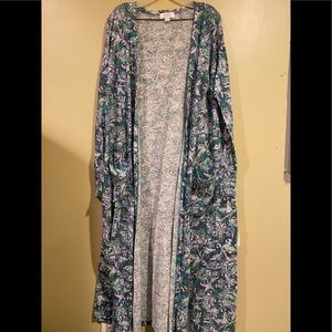 Gently worn Lularoe Large Sarah, Blue speckle Cardigan Sweater with pockets.