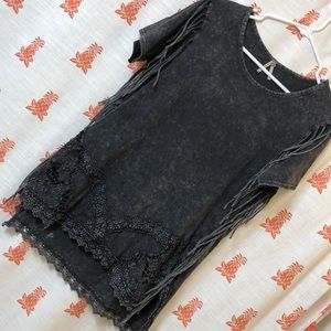 Black Leather Fringe Shorts