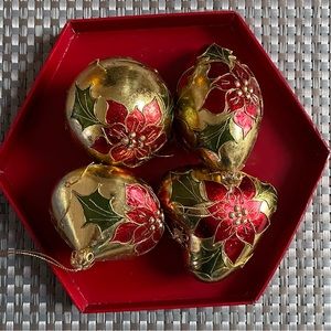 Gold & Red Floral Poinsettia Ornaments