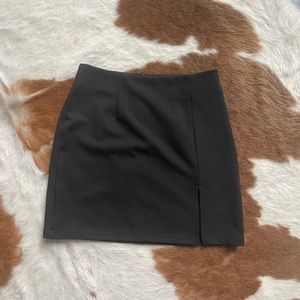 Black mini skirt with front slit