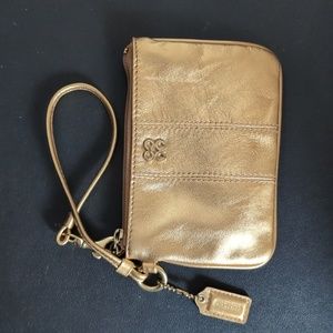 Small gold coach wristlet/clutch