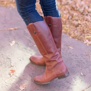 Frye Boots Melissa Medallion Riding Leather Tall Western Brown Womens Size 7.5 B