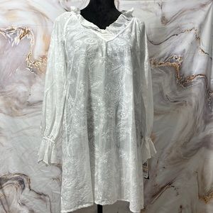 Natori Long Flare Sleeve Sheer Floral White Embroidered Boho Dress Cover Up S