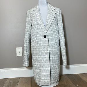 Massimo Dutti long sleeve belted button down black &white 3/4 length dress XS/S