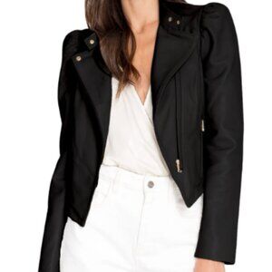 LaMarque Kaia Puff Sleeve Leather Jacket Black, Size Small - NWT