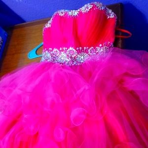 SIZE SMALL HOT PINK SHORT WITH DIAMONDS ON WAIST AND TOP DRESS