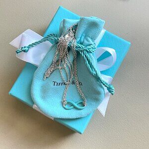 Tiffany & Co. Blue Enamel Infinity Pendant Necklace Silver Double Chain