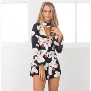 Afterthought Playsuit In Black Floral