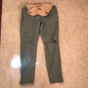 Maternity cropped army green pants