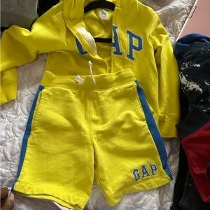 Boys Gap bright yellow 3 piece set, hoodie, shorts and hat