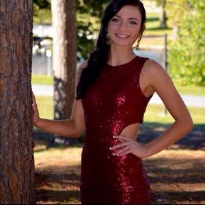 Short sexy sequin dress, open back.