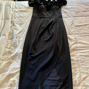 XSCAPE Off Shoulder Ruffle Faux Wrap Tulip Dress in Black Sz. 16