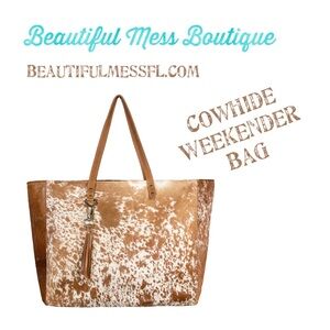 NWT The Kimmy ALL Cowhide Weekender Bag in Brown & White Hide
