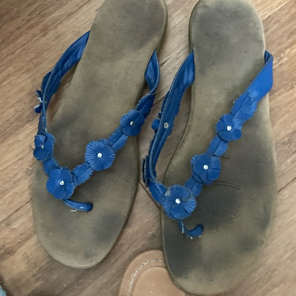 Luv these pretty and preworn thong sandals! Fun, feminine and girly vibes with the flower detailing on the straps! Thanks for your keen footwear eye, the deal/sale, quick-ship and do take care! DM