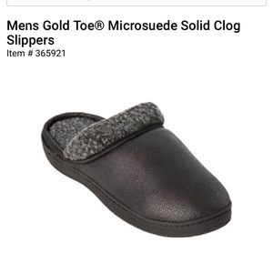 Mens Gold Toe® microsuede solid black memory foam clog slippers