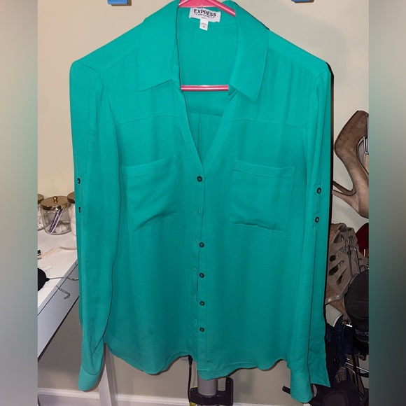 Abercrombie & Fitch Tops - A&F Oversized Poplin Colorblock Button-Up Shirt - Casual Elegance in Every Stitc
