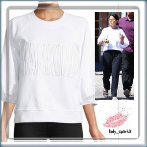 7 FAM | MANKIND EMBROIDERED 3/4 PUFF SLEEVE SWEATSHIRT IN WHITE SMALL