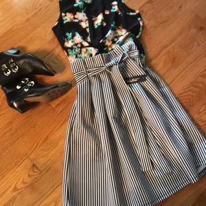 Striped Sleeveless Peplum Tank Top - Black/White SUPER CUTE Size M