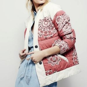 FREE PEOPLE Quilted Button Front Paisley Boho Bandana Jacket RARE