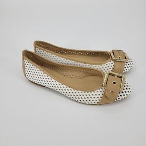 French Sole fs/ny flats buckle perforated leather white tan 10 spring summer