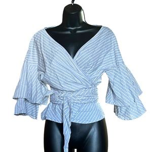 💜 J Crew Zipper Painter's Tee Navy Striped Top